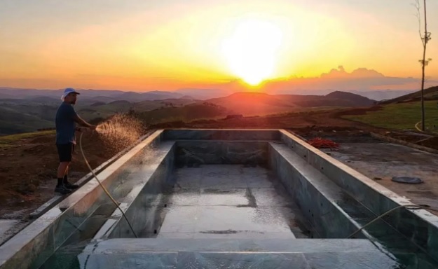 No Instagram, ele postou fotos em que aparece lavando a piscina, que está quase pronta. “Amo essa sua empolgação com arquitetura e obra”, comentou uma internauta.”