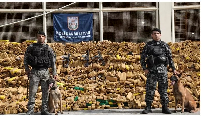 Um bunker com 48 toneladas de maconha foi localizado com o auxílio de cães farejadores do Batalhão de Ações com Cães (BAC) na comunidade da Nova Holanda, no Complexo da Maré, no Rio de Janeiro, na terça-feira (7). Durante a operação, também foram apreendidos cinco fuzis, quatro pistolas e recuperados 26 veículos roubados. Um suspeito foi preso, segundo a Polícia Militar do Rio de Janeiro.