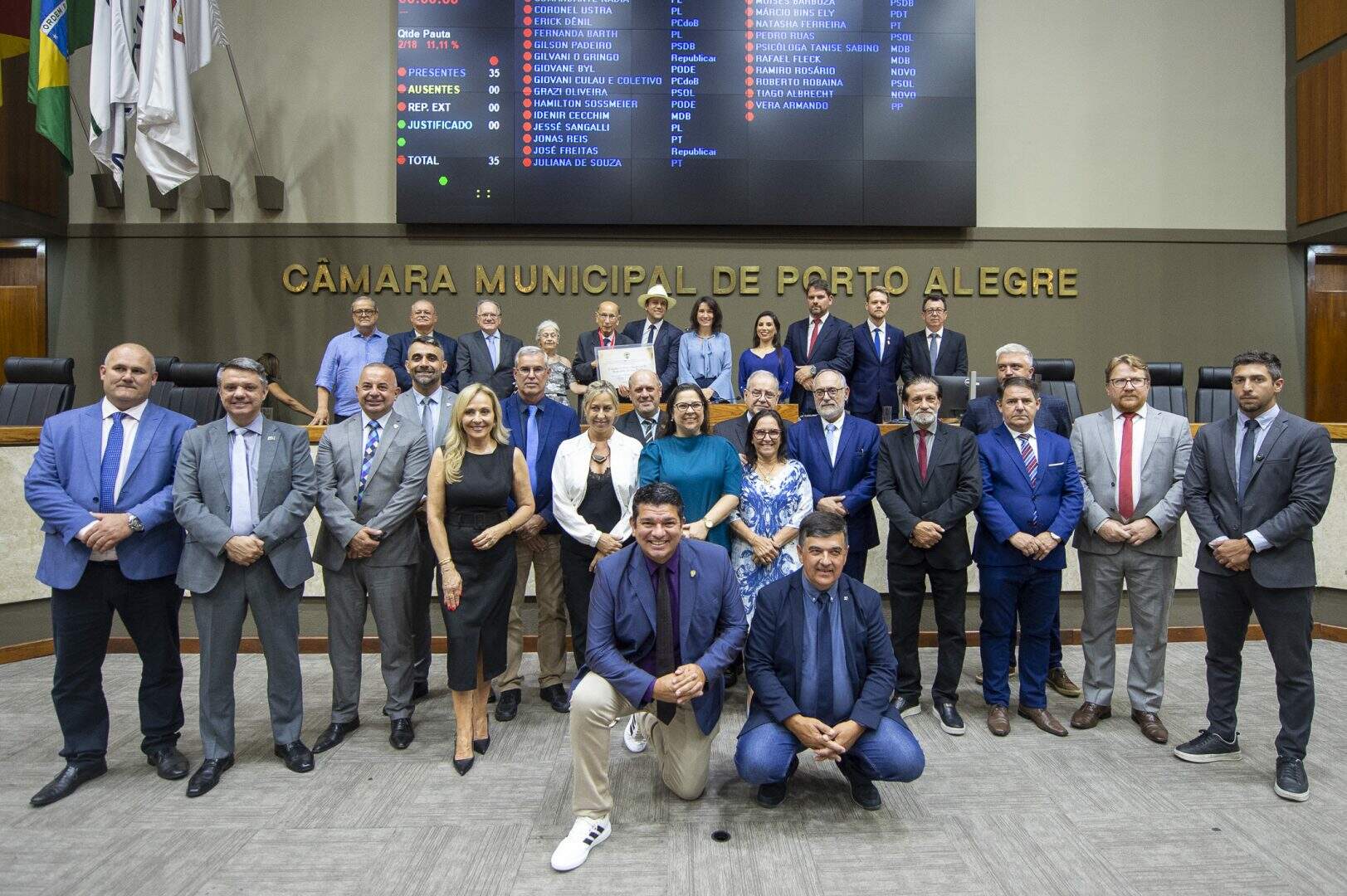 O título foi proposto pela Mesa Diretora da Casa. A presidente do Legislativo, vereadora Comandante Nádia (PL), conduziu a homenagem em nome da Casa e enfatizou que todos os vereadores e vereadoras sabem a importância de prestar homenagem às pessoas que fazem e seguem fazendo muito por Porto Alegre.
