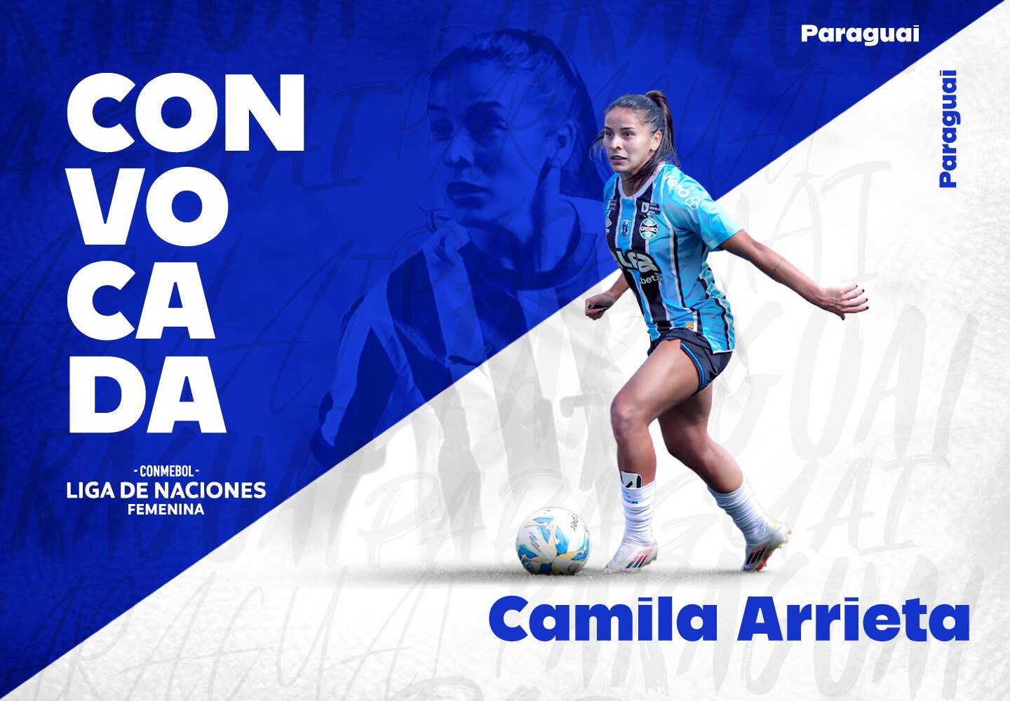 Para a segunda fase da Conmebol Liga das Nações Feminina, a lateral-esquerda Camila Arrieta está novamente entre as convocadas para defender a Seleção Paraguaia na disputa. A atleta do Grêmio vestirá as cores de seu país nos dias 28 de novembro e 2 de dezembro, quando enfrenta o Uruguai e o Chile, respectivamente.