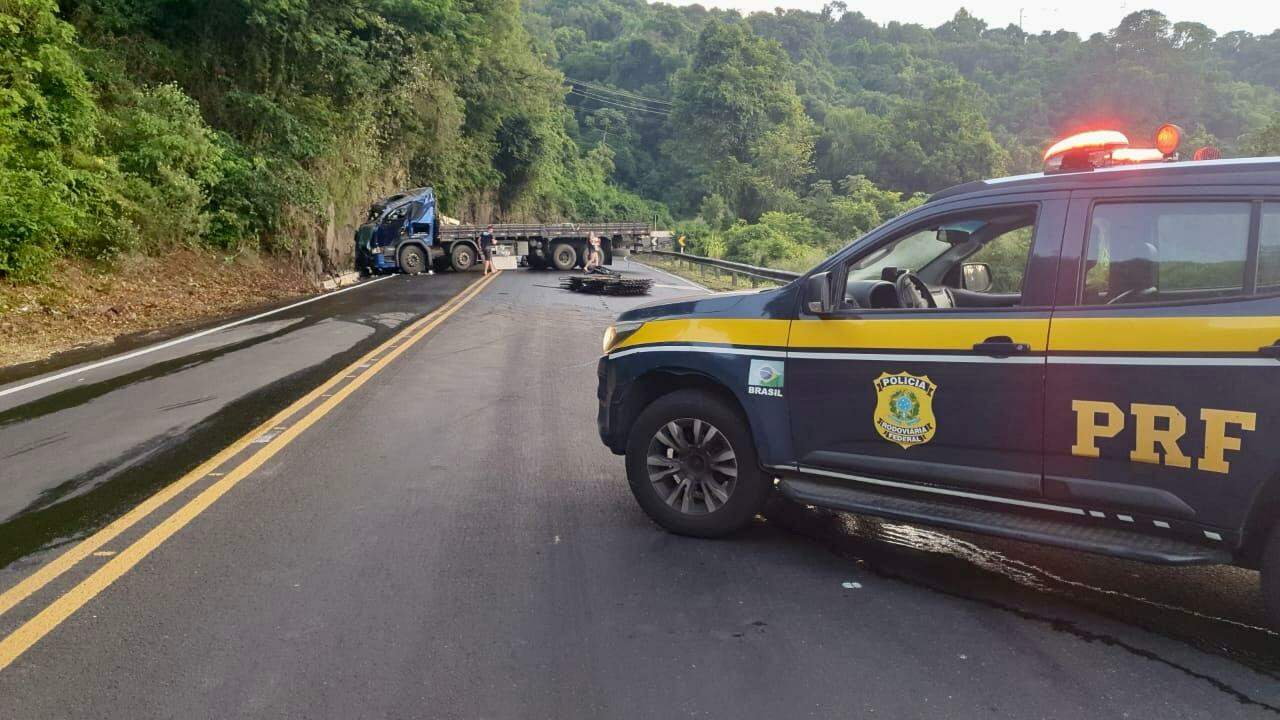 Ainda não há previsão para a remoção do caminhão e a liberação total da rodovia.