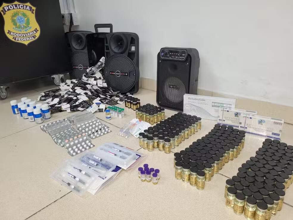 A Polícia Rodoviária Federal (PRF) apreendeu uma grande quantidade de anabolizantes, comprimidos de testosterona e canetas emagrecedoras escondidos dentro de brinquedos e caixas de som em um ônibus que trafegava pela BR-290, em Gravataí, na Região Metropolitana de Porto Alegre.