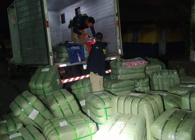 Na madrugada deste domingo (13), a Polícia Rodoviária Federal (PRF) apreendeu um carregamento com cerca de 10 mil camisetas esportivas ingressadas no Brasil de forma ilegal. Segundo a polícia, a mercadoria foi avalia em quase meio milhão de reais.