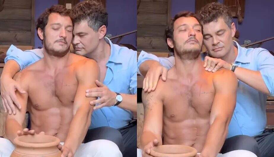 Em suas redes sociais, ele surgiu coladinho do colega de elenco, enquanto os dois esculpiam um vaso de argila, reproduzindo o memorável momento protagonizado por Demi Moore e Patrick Swayze.