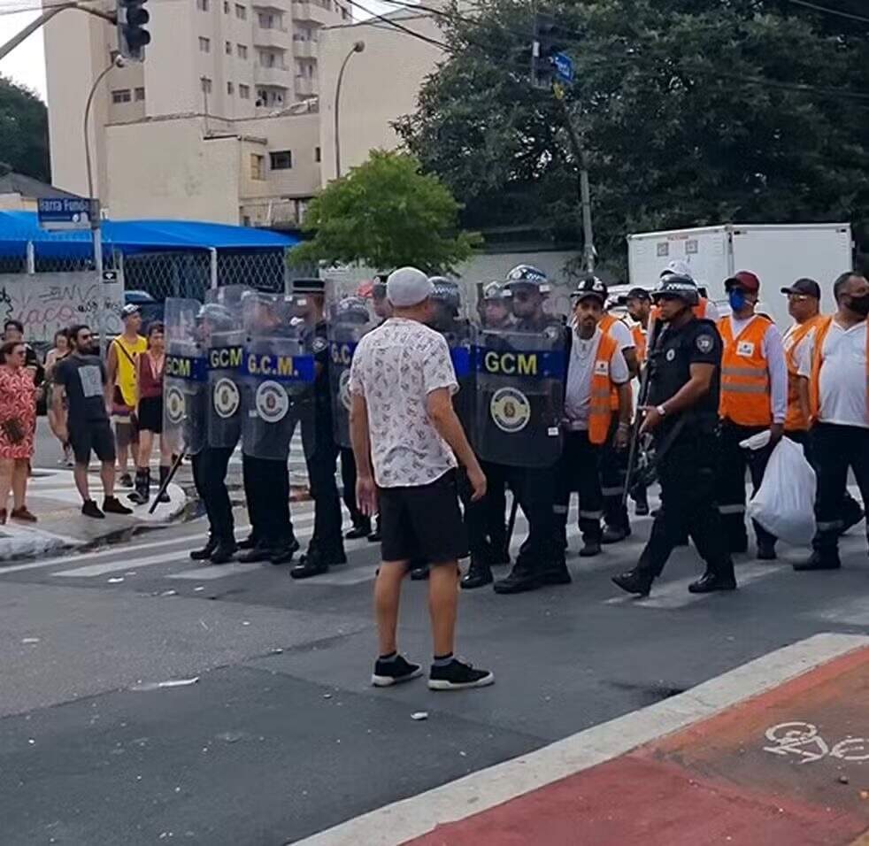 Vídeos que circulam pelas redes sociais mostram o momento em que guardas civis atiraram e jogaram spray de pimenta. Nas imagens, também é possível ver correria e funcionários da limpeza municipal atrás dos agentes.