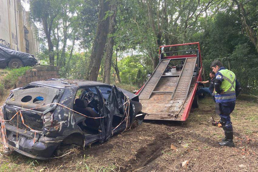Veículos recolhidos das ruas pela Empresa Pública de Transporte e Circulação (EPTC) em situação de sucata e abandono começaram a ser retirados de um terreno na Zona Norte da Capital. Dos 46 carros, 30 já foram removidos. Ainda ficarão 14, que serão oferecidos em leilão nos próximos meses.