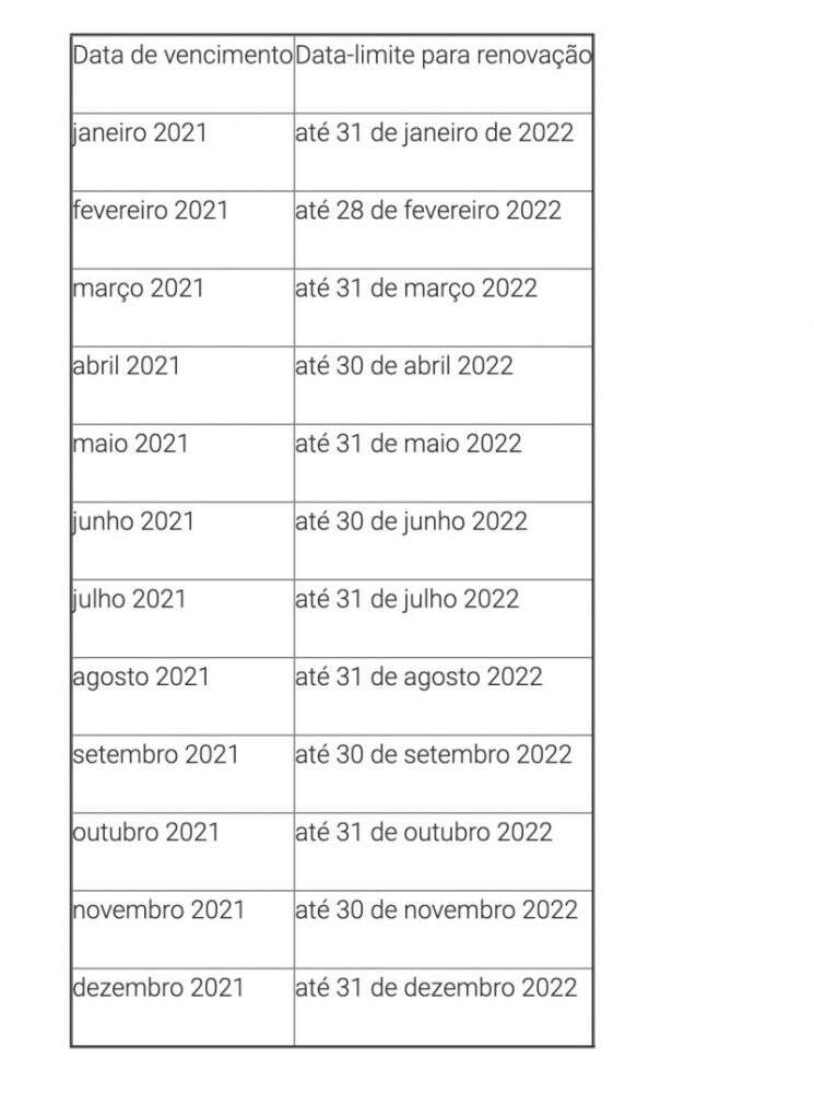 Confira abaixo as datas para renovação do documento: