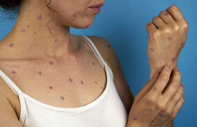 Os sintomas incluem erupções que geralmente se desenvolvem no rosto e depois se espalham por outras partes do corpo, gerando uma crosta. Quando esta desaparece, o indivíduo já não é mais vetor de transmissão – o período de incubação é de seis a 16 dias (prazo que pode chegar a 21 dias).