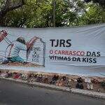 Familiares de vítimas do incêndio na boate Kiss protestam em frente ao Tribunal de Justiça do RS
