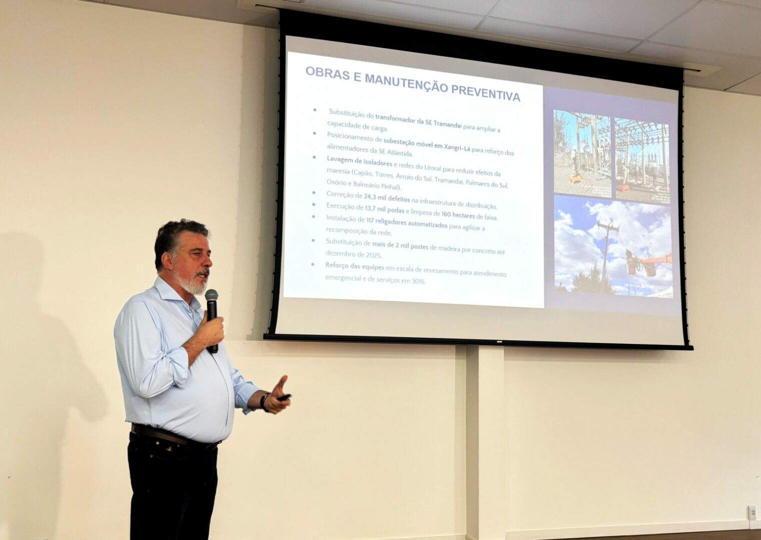 A CEEE Equatorial apresentou, em entrevista coletiva na sede da empresa, em Porto Alegre, o Plano Verão 2025-2026, que reúne um conjunto de obras estruturantes, reforço operacional e ações preventivas de manutenção para garantir o fornecimento de energia elétrica no litoral gaúcho durante o veraneio.