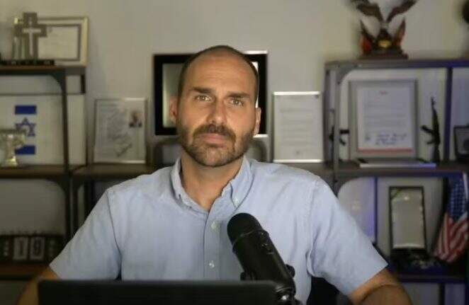 Fora do Brasil desde o ano passado, Eduardo perdeu o mandato na Câmara dos Deputados e teme ser preso, caso volte ao país. Caciques de partidos de centro opinam que ele não teria condições de assumir o cargo e que, ao acenar com a possibilidade, Flávio afasta eleitores que fogem da polarização simbolizada pelo antagonismo entre bolsonarismo e petismo.