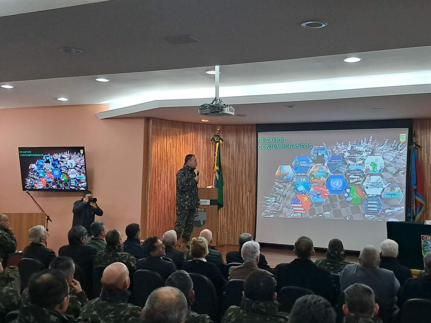Comunicação estratégica e relações institucionais foi debatida em palestra conduzida pelo chefe do Estado-Maior do Exército, general Richard Fernandez Nunes, na sede do Comando Militar do Sul desta quinta-feira (3), em Porto Alegre.