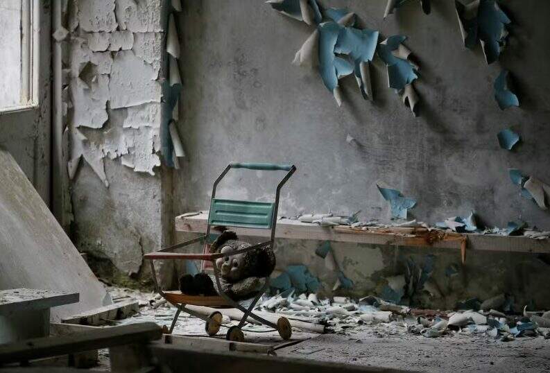 A cidade de Pripyat, na Ucrânia, era, há 40 anos, o grande orgulho do setor soviético de energia nuclear. Prometia‑se a ela um futuro grandioso. Hoje, veículos abandonados perecem à beira das ruas. Brinquedos, restos de eletrodomésticos, louças e placas parcialmente desbotadas em língua russa, que informam sobre o nível de radioatividade, estão espalhados ao lado das casas. Os prédios estão vazios, com janelas quebradas e portas escancaradas.