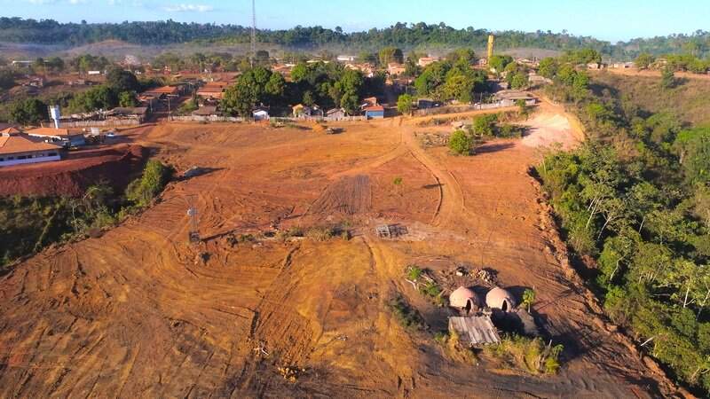 A extração do manganês se dá a céu aberto, com o uso de maquinário pesado para escavar os morros, além de equipamentos para britar o minério.