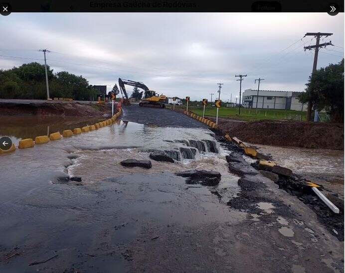 Em Santo Antônio da Patrulha, no Litoral Norte gaúcho, o acesso que havia sido construído na RS-474 após a queda de uma ponte durante o ciclone de junho, teve acúmulo de água e precisou ser interrompido.