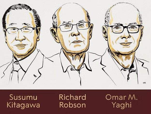 Eles dividirão o prêmio de 11 milhões de coroas suecas (cerca de R$ 6,2 milhões). O trio desenvolveu estruturas metal-orgânicas conhecidas como MOFs (metal-organic frameworks) – materiais ultraporosos capazes de capturar, armazenar e separar moléculas em nível atômico.