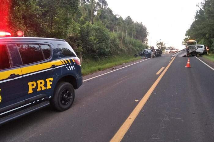 De acordo com a PRF, o Sandero colidiu lateralmente na Parati, rodou na pista e depois bateu transversalmente com o Focus.
