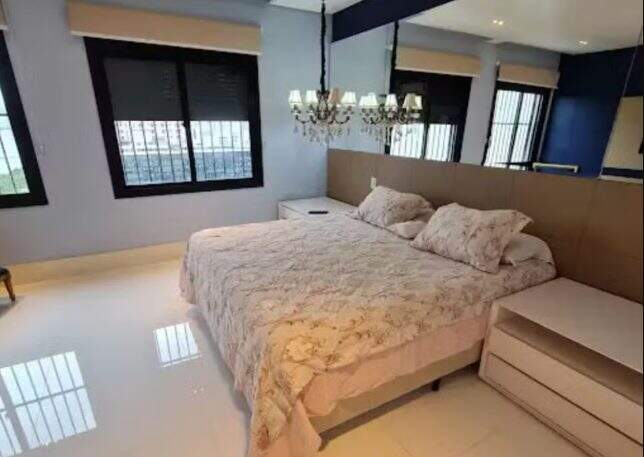 A cobertura fica em um condomínio residencial de alto padrão, localizado na orla de Santos, no bairro Aparecida. Além da vista panorâmica, o empreendimento fica próximo à igreja Coração de Jesus e de importantes centros comerciais, como um shopping.