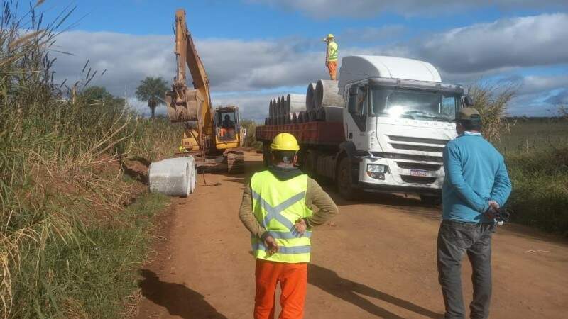 A primeira etapa dos trabalhos consiste em ações de drenagem, com a substituição de bueiros antigos e a implantação de novos perto do entroncamento com a rodovia federal.