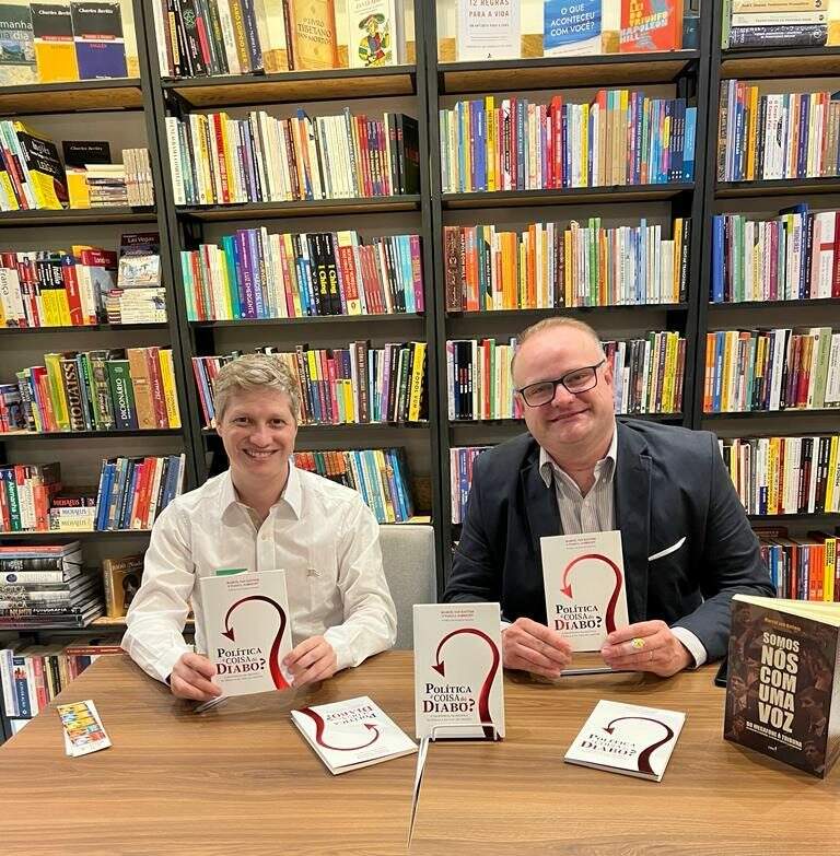 O comunicador da Rádio Pampa e da TV Pampa Tiago Albrecht e o deputado federal Marcel van Hattem lançam neste sábado (23), em Porto Alegre, o livro “Política é coisa do diabo?”. O evento ocorre, até às 19h, na Livraria Santos da Galeria Casa Prado, localizada na rua Dinarte Ribeiro, 148, no bairro Moinhos de Vento.