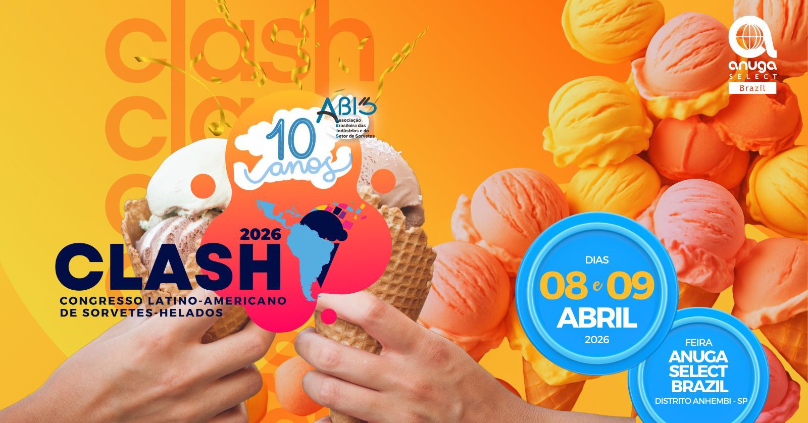 Promovido pela Associação Brasileira das Indústrias e do Setor de Sorvetes (ABIS), www.abis.com.br, a edição deste ano do Congresso, intitulada “Dez Anos Com o Sorvete Nutrindo Futuros”, será realizada mais uma vez em parceria com a Anuga Select Brazil, maior feira de alimentos e bebidas do mundo, no Distrito Anhembi em São Paulo. Durante o evento, o CLASH contará com um espaço especial de convivência para o setor de sorvetes.
