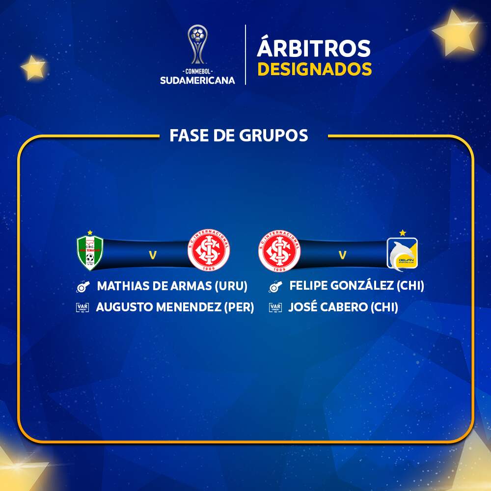 Na próxima semana, o Inter disputará dois jogos decisivos pela Copa Sul-Americana. Após perder para o Belgrano-ARG na última terça-feira (28), o Colorado precisa de, pelo menos, quatro pontos para se classificar para a próxima fase da competição continental. Na próxima terça (4), o adversário será o Real Tomayapo, em duelo sediado no IV Centenario Stadium, na altitude da Bolívia. No sábado (8), o rival será o Delfín-EQU, no estádio Alfredo Jaconi, em Caxias do Sul. Diante da proximidade entre as partidas, a Conmebol divulgou novas informações sobre as equipes de arbitragem.