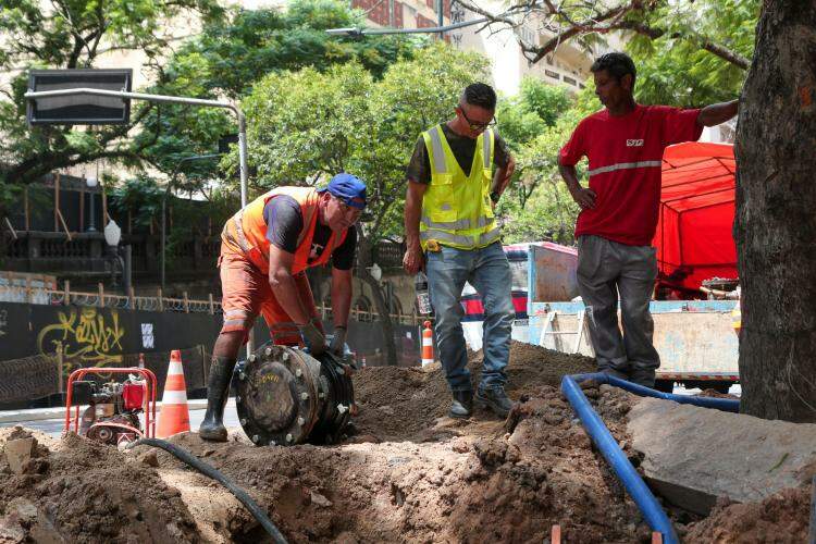 O serviço é um reparo da obra de substituição de redes de abastecimento no local. Após a instalação da tubulação de água na avenida, foi identificada a necessidade de manutenção em pontos da rede de drenagem.