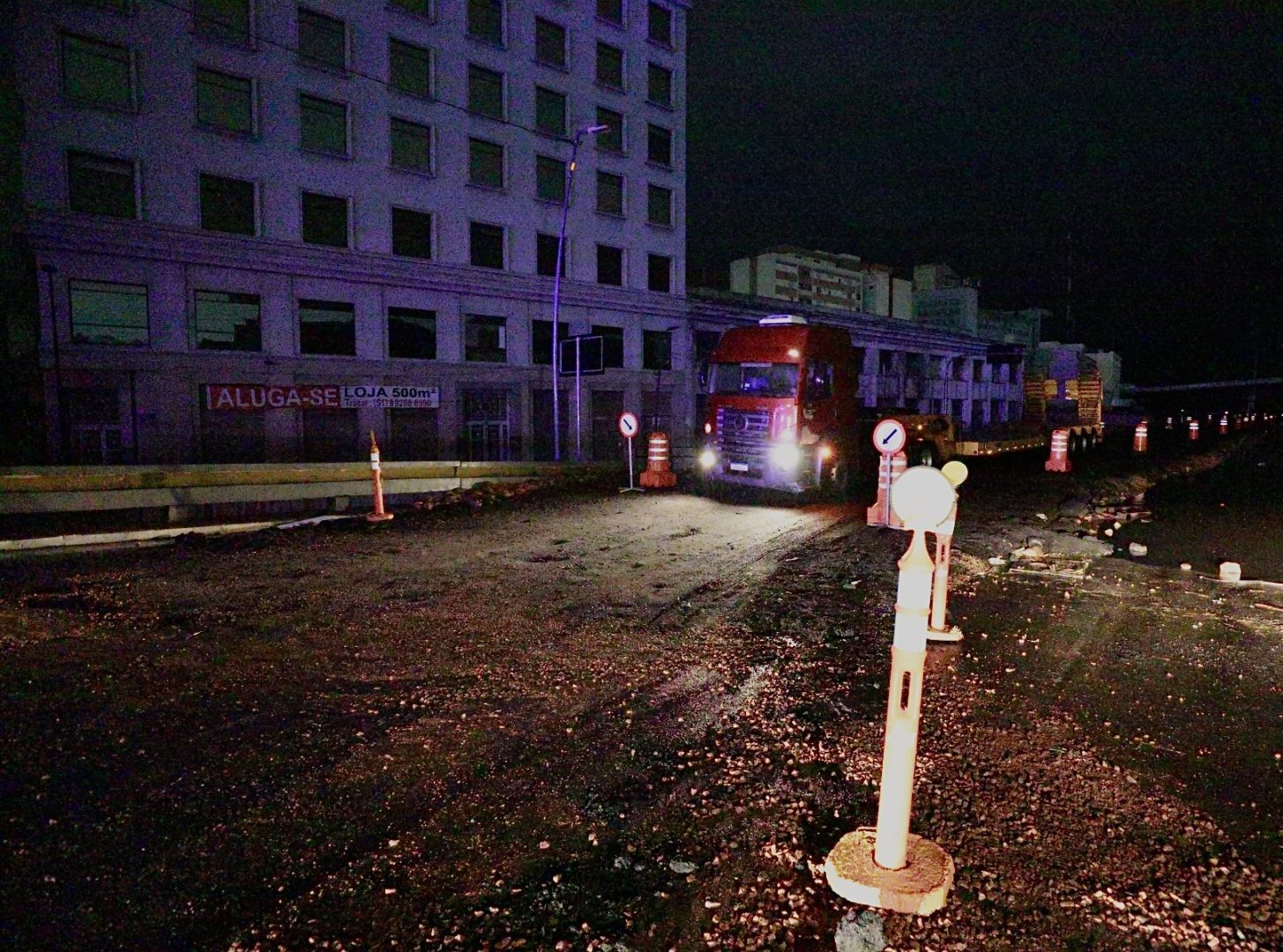 A obra começou na quarta-feira (8) com a colocação de pedras-rachão ao longo da nova via, criando uma pista única e que funciona de forma alternada, com uma direção por vez – no sentido Osvaldo Aranha–Castelo Branco, via túnel da Conceição (e vice-versa). Agentes da Empresa Pública de Transporte e Circulação (EPTC) orientam o trânsito no local. Veículos de passeio não estão autorizados a circular pelo local.