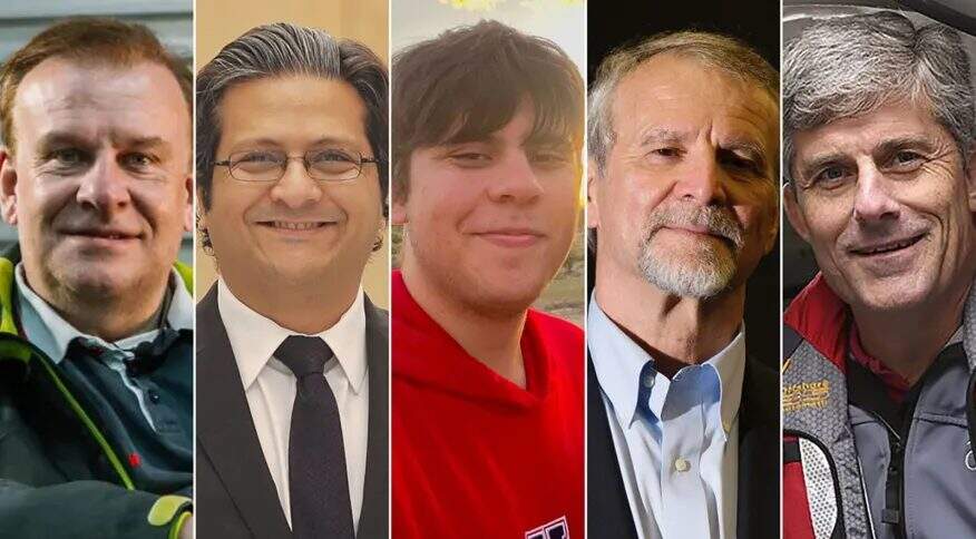 Estavam a bordo um piloto e quatro passageiros. Stockton Rush, CEO e fundador da OceanGate, empresa que promove a viagem até os destroços do Titanic com o submersível.