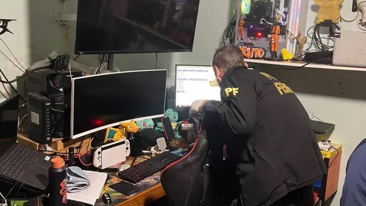 Computadores, celulares e também armas foram apreendidas nas casas dos suspeitos. A investigação da Diretoria de Combate a Crimes Cibernéticos (DCiber), da PF em Brasília, identificou os computadores que eram usados para compartilhamento do crime. Com isso, os locais foram levantados para essa operação.