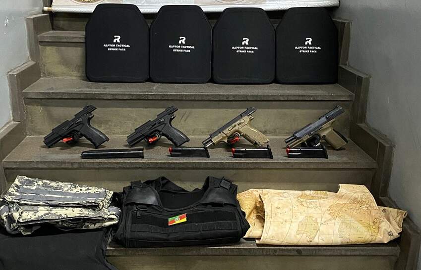 Segundo informações divulgadas neste domingo (7), o grupo foi preso na noite de sábado (6) portando quatro pistolas calibre 9 milímetros, oito carregadores de pistola, sendo um deles com capacidade prolongada para 30 munições, 116 munições calibre 9 milímetros e seis coletes à prova de balas.
