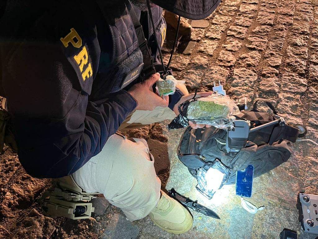 A PRF (Polícia Rodoviária Federal) apreendeu, no fim da noite de domingo (10), um drone carregado com skunk, maconha e celulares em Eldorado do Sul, na Região Metropolitana de Porto Alegre. Três criminosos foram presos.