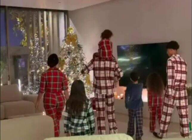 Em Riad, onde mantém residência, o capitão da Seleção Portuguesa passou o Natal apenas com Georgina Rodríguez e os cinco filhos, Cristianinho, Eva, Mateo, Alana Martina e Bella Esmeralda. Ele compartilhou um vídeo em sua página do Instagram na manhã do dia de Natal com a família.
