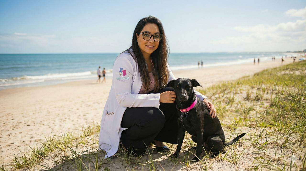 Dra. Anninha Pinto, da Skinvet, detalha como sol, areia e água do mar podem afetar a saúde dos pets e explica medidas simples que fazem toda a diferença.