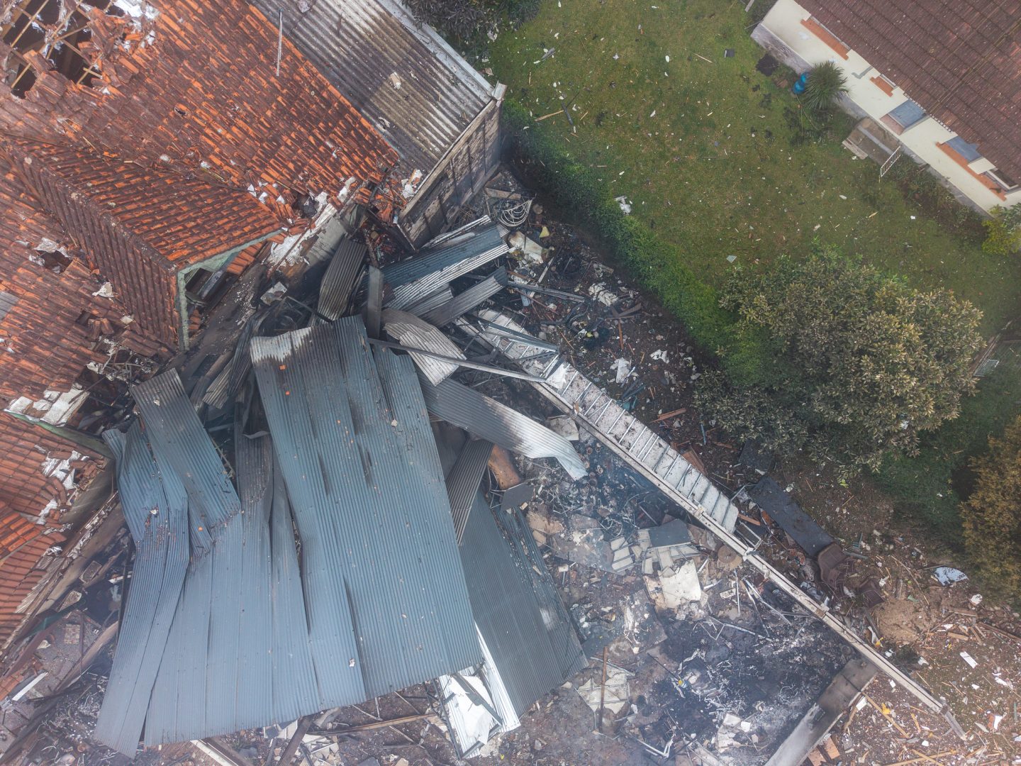No momento da queda, a aeronave atingiu a chaminé de um prédio, uma casa, uma loja de móveis e uma pousada.