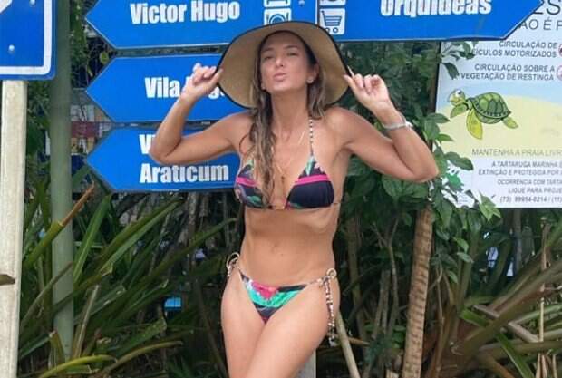 De biquíni estampado, ela postou cliques no município de Santo André, com direito a clique divertido escalando uma árvore. Nos stories, Tici, que é casada com o jornalista Cesar Tralli, ainda encantou internautas ao mostrar a caçula, Manuella, de 2 anos, se divertindo na viagem.