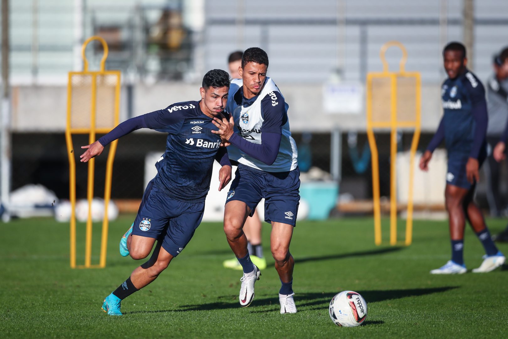 Os atletas que disputaram os 90 minutos da partida contra o Leão realizaram um trabalho regenerativo, com exercícios na academia. Enquanto isso, os demais vieram a campo para um treino mais intenso, orientado pelo técnico Roger Machado e comissão.
