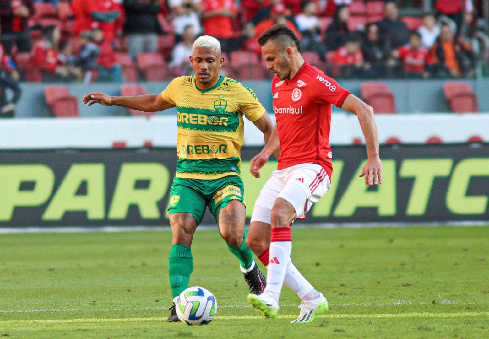 Aos 40, De Pena pega sobra na entrada da área e finalizou em cima da marcação. Aos 43, Gol do Cuiabá! Pablo Ceppelini cobrou a falta na medida para Raniele. O volante apareceu na segunda trave, subiu mais que a marcação e cabeceou no fundo do gol defendido por Rochet. Inter 1 x 1 Cuiabá. Aos 49, Bustos tabelou e chegou à linha de fundo. O lateral do Inter cruzou na grande área, a zaga do Dourado afastou e a bola sobrou para De Pena. O camisa 14 finalizou em cima do marcador e pediu pênalti. O Var analisou o lance, mas não marcou nada. Aos 50, o juiz encerrou a partida.
