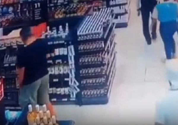 As imagens mostram ainda o homem no caixa do supermercado. Ele passa outros itens e faz o pagamento, sem incluir o pote de carpaccio. Após finalizar a compra, o cliente sai da loja carregando duas sacolas.