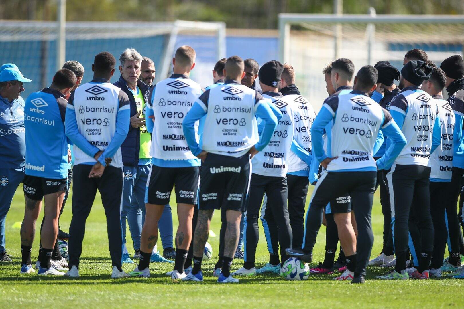 O comandante gremista Renato Portaluppi formou duas equipes. Elas se enfrentaram em uma atividade de dois toques, disputada em espaço delimitado, por determinados períodos de tempo.