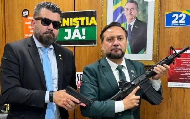 Na foto divulgada, Zezinho segura um fuzil, enquanto Caveira empunha uma pistola. Ainda segundo a publicação, o vereador confirmou à Veja que as armas eram reais e pertencem ao deputado. “São de propriedade do deputado federal Delegado Caveira”, afirmou. Ainda conforme a publicação, o sistema de detecção de metais da Câmara não foi acionado para impedir a entrada das armas, o que contraria os rígidos protocolos de segurança da Casa.