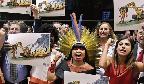 A sessão foi marcada por divergências até mesmo entre deputadas indígenas. Silvia Waiãpi (PL-AP) opinou pela derrubada do veto.