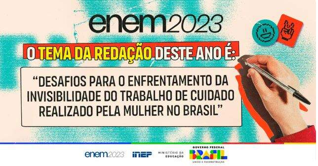 O tema da redação do Exame Nacional do Ensino Médio (Enem) deste ano é: “Desafios para o enfrentamento da invisibilidade do trabalho de cuidado realizado pela mulher no Brasil”.