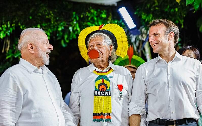 O presidente Lula andou ciceroneou o presidente francês, Emmanuel Macron, num tour pelas terras brasileiras. Na agenda, visitas a comunidades ribeirinhas e fábricas de chocolates orgânicos, convescotes com caciques e jantares com celebridades das artes e esportes.