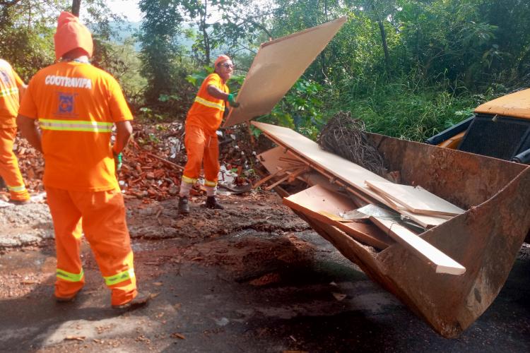 Os trabalhos foram realizados no domingo (7) por uma equipe composta por quatro garis e um fiscal do DMLU, com o auxílio de uma retroescavadeira e de dois caminhões.