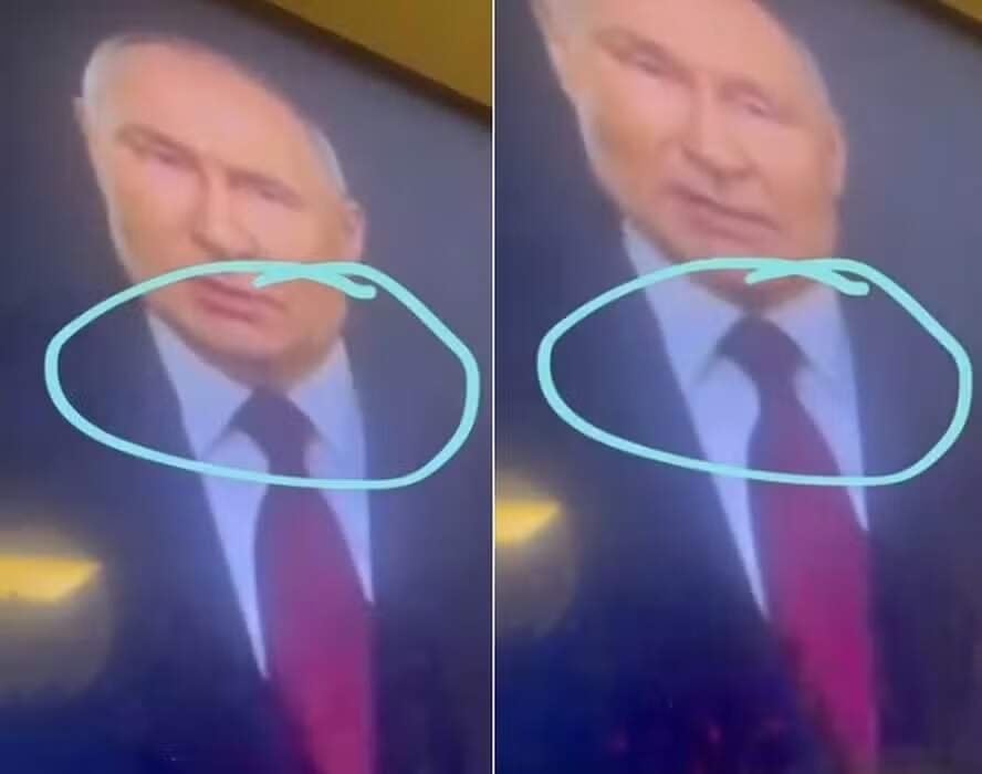 “Aparentemente, a saudação de Ano Novo de Putin foi gerada por IA”, postou Mykhaïlo Golub no X (antigo Twitter) para seus 30 mil seguidores ao lado de um vídeo de Putin com o pescoço circulado em azul, sugerindo que a cabeça e o resto do corpo estavam desconectados por causa de um “problema técnico”.