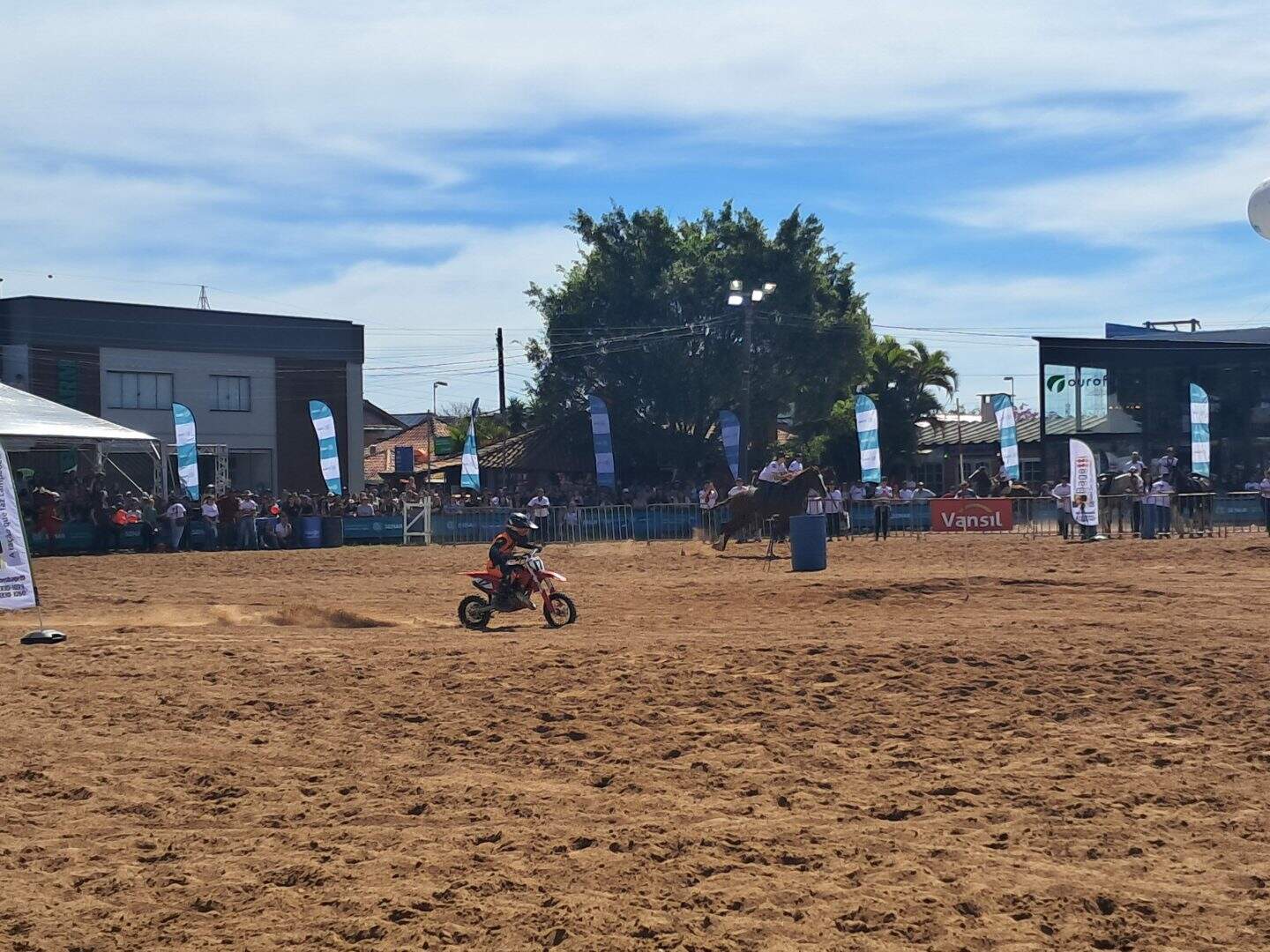O público lotou as arquibancadas da pista de competições, neste domingo (31), para acompanhar a disputa que já virou febre na programação da Expointer, no Parque Assis Brasil, em Esteio. De um lado, a tradição dos cavalos da raça Mangalarga Paulista; do outro, a potência das motos off-road de 350 cilindradas. O ponto alto está sendo a disputa entre motos e cavalos.
