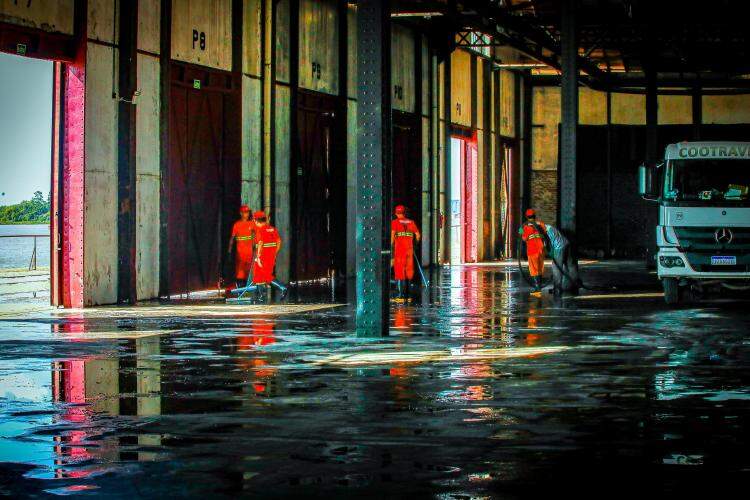 As atividades iniciaram no sábado (11) com a capina e a roçada da parte externa do Cais. A ação contou com mais de 240 garis e foram removidas 48,9 toneladas de materiais provenientes do corte da vegetação.