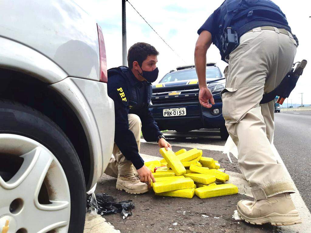 A PRF (Polícia Rodoviária Federal) apreendeu, nesta quinta-feira (10), 25 quilos de maconha e prendeu dois homens na Região Metropolitana de Porto Alegre.