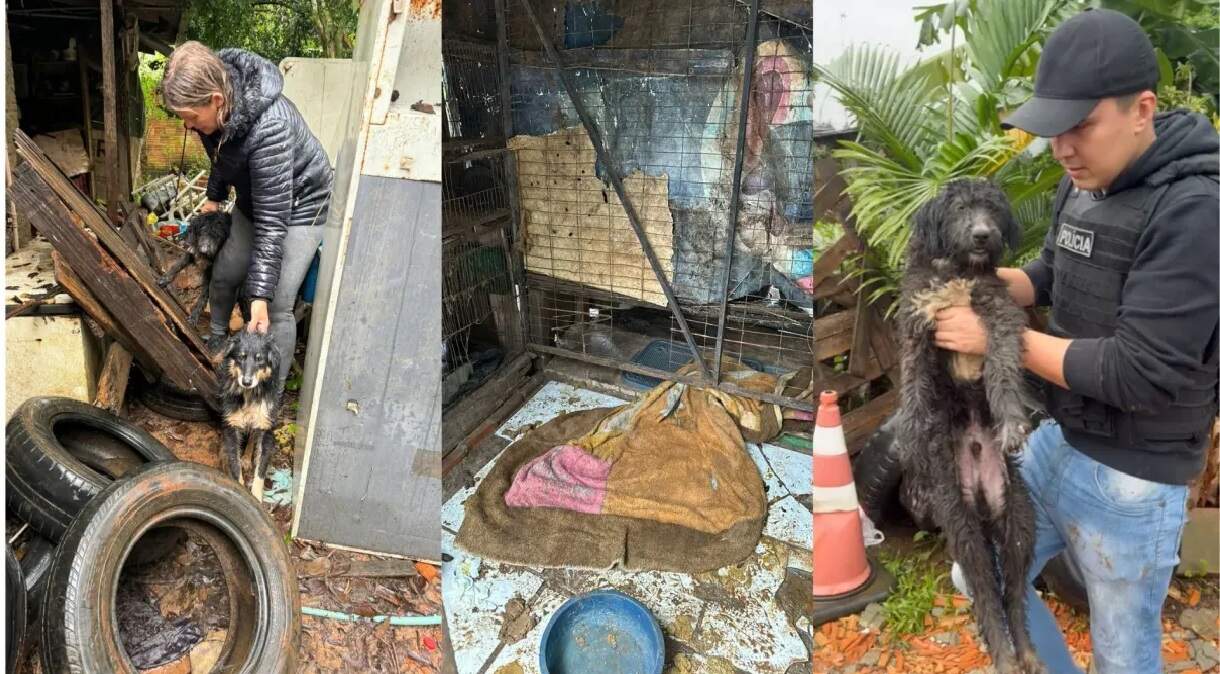Uma mulher de 42 anos foi presa em flagrante por maltratar dezenas de animais em um canil clandestino na cidade de Gravataí, na Região Metropolitana de Porto Alegre. Ao todo, 65 cães e dois gatos foram encontrados em gaiolas inadequadas e “minúsculas”. A prisão ocorreu na manhã desta segunda-feira (27), no bairro Vila Cledi.